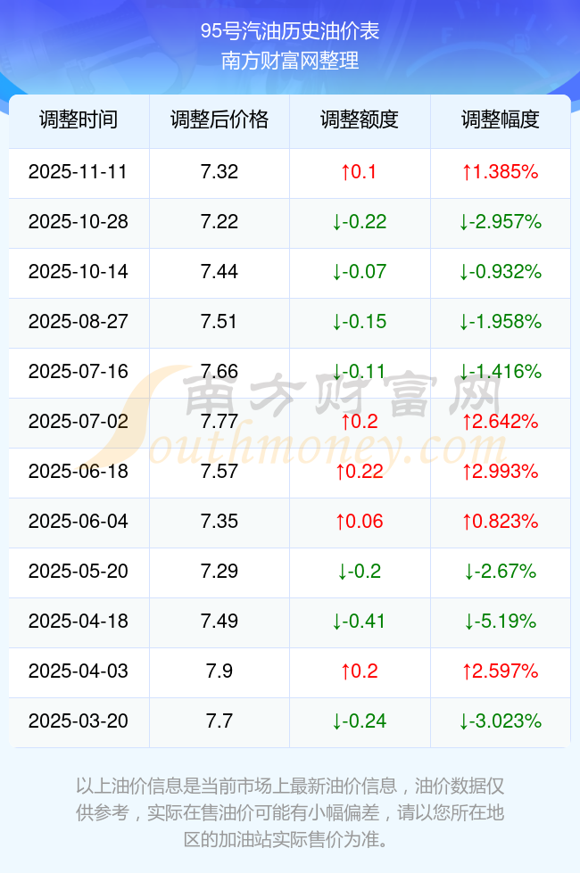 2025年油價(jià)調(diào)整時(shí)間表及價(jià)格