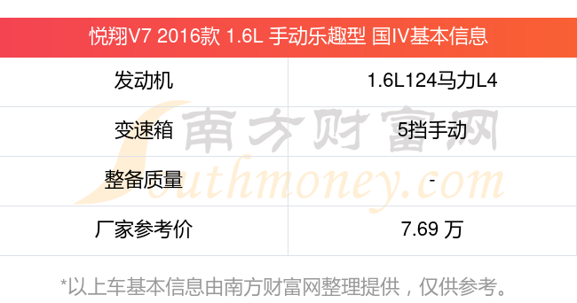 在動(dòng)力上,悅翔V7 2016款 1.6L 手動(dòng)樂(lè)趣型 國(guó)IV配備的是一臺(tái)1.6L124馬力L4自然吸氣發(fā)動(dòng)機(jī),匹配的是5擋手動(dòng)擋變速箱,燃料形式為汽油,廠家參考價(jià)7.69萬(wàn)元。