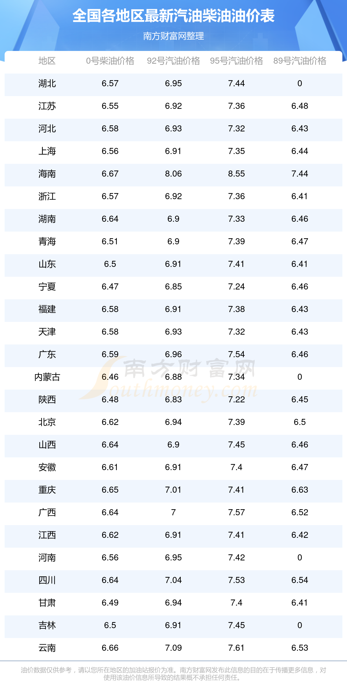 2025年11月16日全國(guó)各地油價(jià)調(diào)整及最新汽油價(jià)格表