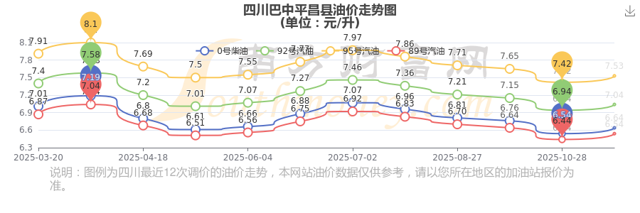 四川巴中平昌縣11月16日95號汽油歷史油價調(diào)整走勢圖