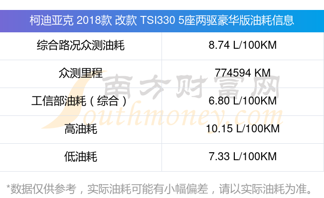 數(shù)據(jù)僅供參考,一般現(xiàn)實(shí)油耗與測試值會有差異,請以實(shí)際油耗為準(zhǔn)。