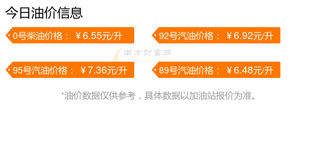 以上數據僅供參考,請以您所在地區(qū)的加油站實際售價為準。南方財富網發(fā)布此信息的目的在于傳播更多信息,對使用該油價信息所導致的結果概不承擔責任。