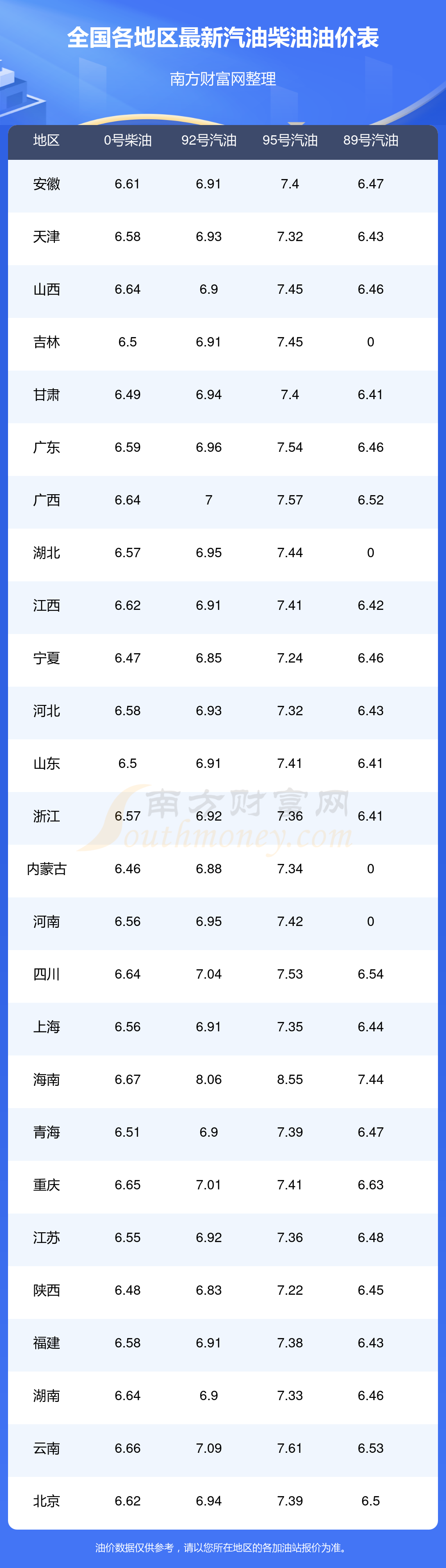 附:最新全國(guó)汽油、柴油價(jià)格一覽表