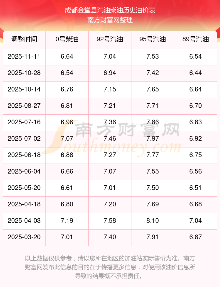 油價(jià)數(shù)據(jù)僅供參考,請(qǐng)以您所在地區(qū)的各加油站報(bào)價(jià)為準(zhǔn)。