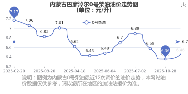 內(nèi)蒙古巴彥淖爾0號柴油歷史油價走勢圖