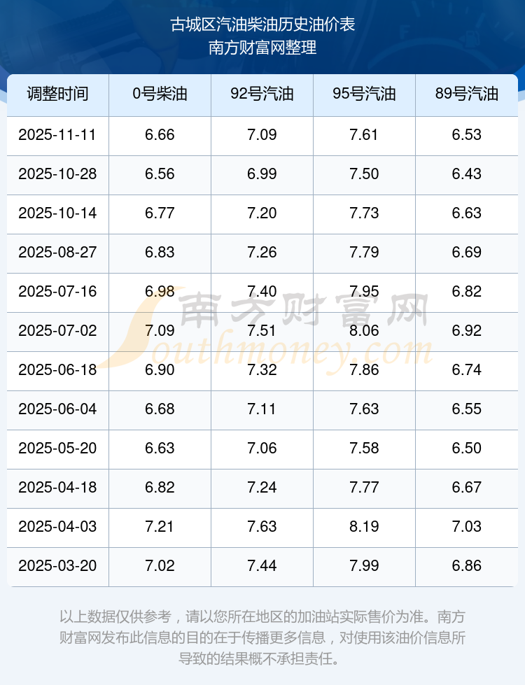 2025年古城區(qū)油價(jià)調(diào)整時(shí)間表