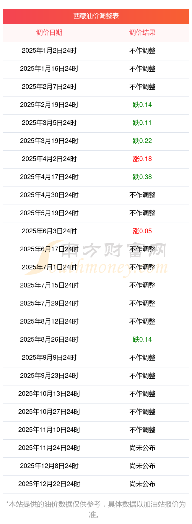 西藏拉薩2025年油價調(diào)整時間及最新價格表