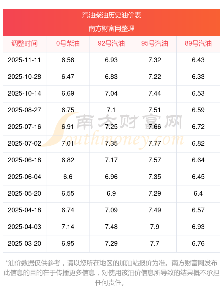 11月16日,靜海汽油、柴油價格多少錢一升?具體為:11月11日調(diào)整后,92號汽油為6.93元,升了0.1元,升幅達1.46%;95號汽油為7.32元,升了0.1元,升幅達1.39%;89號汽油為6.43元,升了0.1元,升幅達1.58%;0號柴油為6.58元,升了0.11元,升幅達1.7%。下一輪油價調(diào)整時間11月24日24時,距離現(xiàn)在還有8.44天。