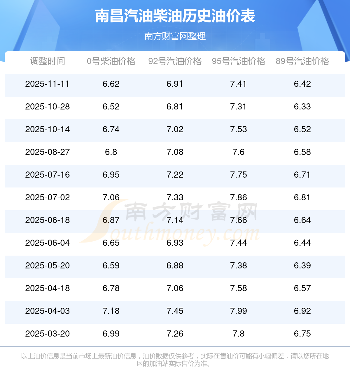 11月16日南昌汽油、柴油每升的價格是11月11日調(diào)整后的價格:92號汽油為6.91元,漲了0.1元,漲幅達(dá)1.47%;95號汽油為7.41元,漲了0.1元,漲幅達(dá)1.37%;89號汽油為6.42元,漲了0.09元,漲幅達(dá)1.42%;0號柴油為6.62元,漲了0.1元,漲幅達(dá)1.53%。
