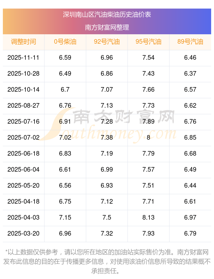 深圳南山區(qū)歷史油價表