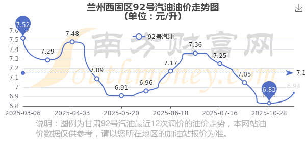 蘭州西固區(qū)92號汽油歷史油價走勢圖