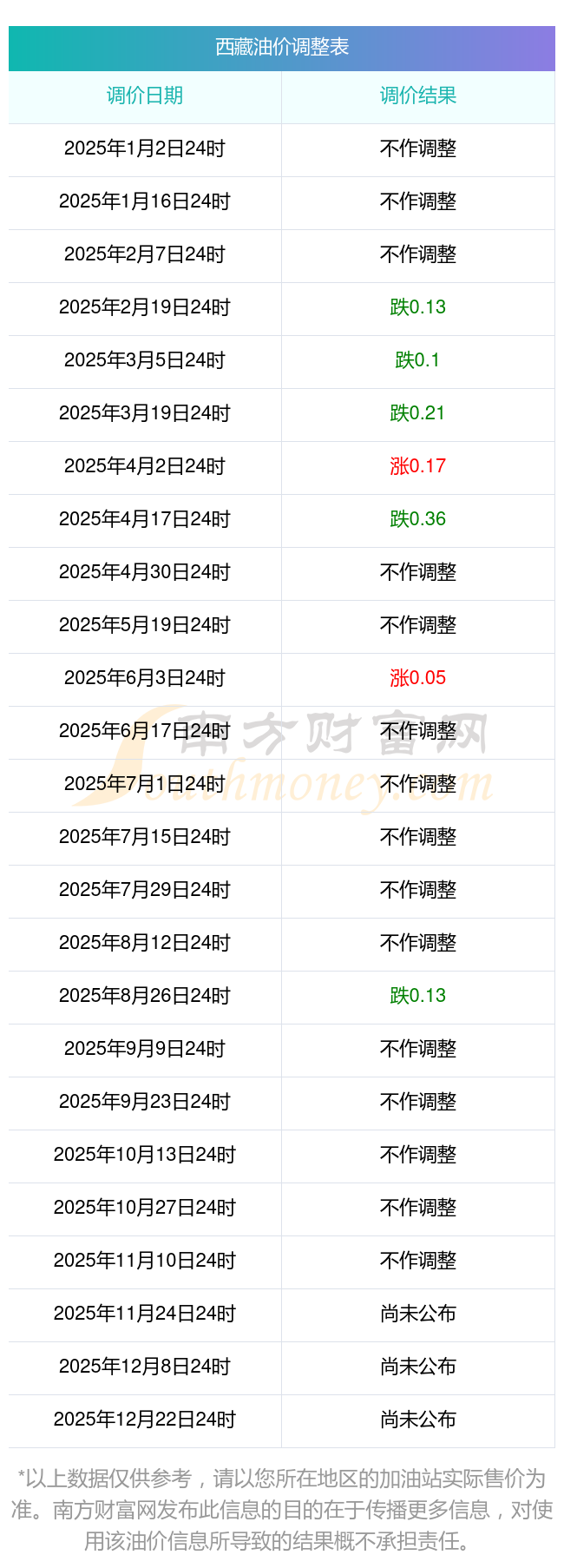 2025年拉薩油價(jià)調(diào)整日歷時(shí)間表