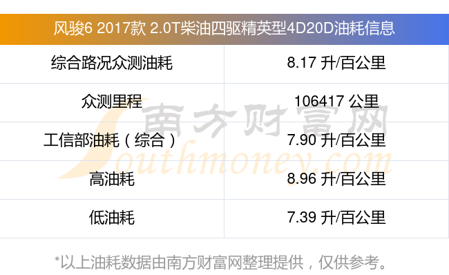 以上油耗數(shù)據(jù)由南方財富網(wǎng)整理提供,僅供參考。
