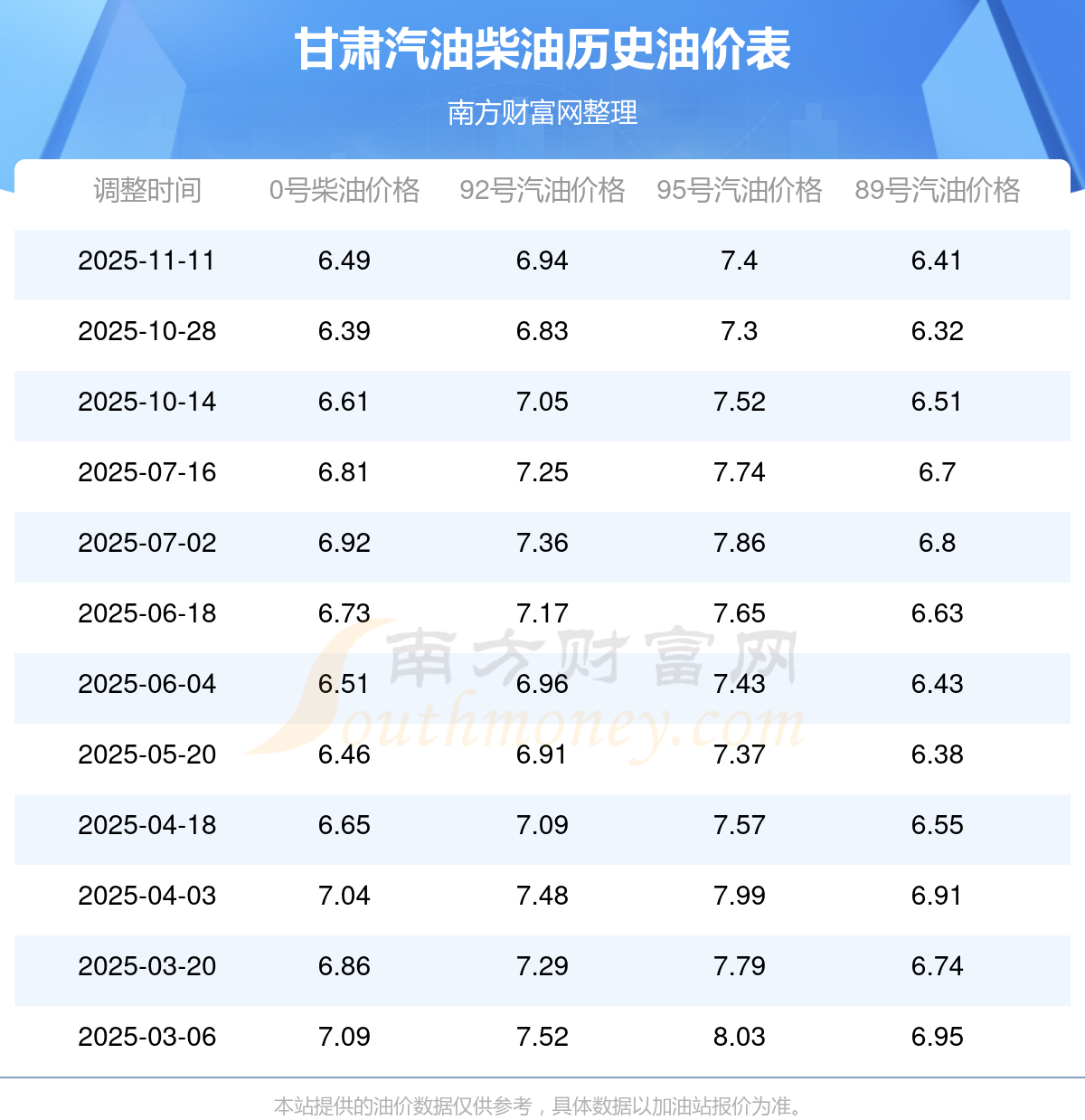 按11月11日0號柴油最新調整價格6.49元每升來計算(以甘肅為例),該車型百公里平均油費為53.023元,按上一輪10月28日調整價格6.39元每升來計算,百公里平均油費為52.206元,對比上一輪多花0.817元,下一輪油價調整時間為11月24日24時。