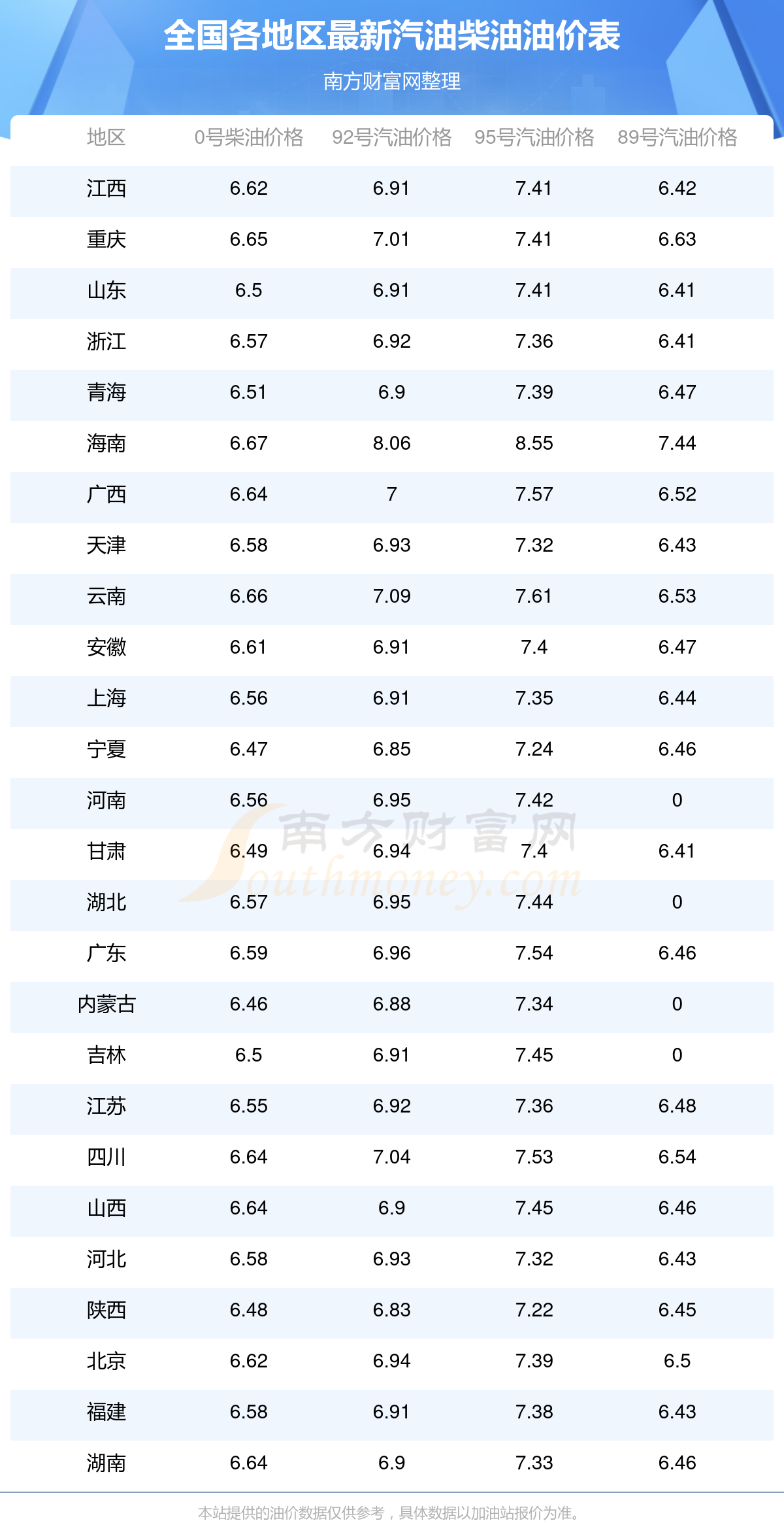 全國(guó)92號(hào)汽油最新平均價(jià)格為:7元每升,其中,最高為海南,價(jià)格為8.06元/升,最低為陜西,價(jià)格為6.83元/升。