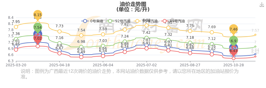 11月16日廣西靖西油價(jià)調(diào)整走勢(shì)圖