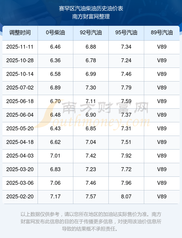 賽罕區(qū)汽油、柴油11月16日每升的價格具體是(11月11日調(diào)整后的價格):92號汽油6.88元;95號汽油7.34元;0號柴油6.46元。