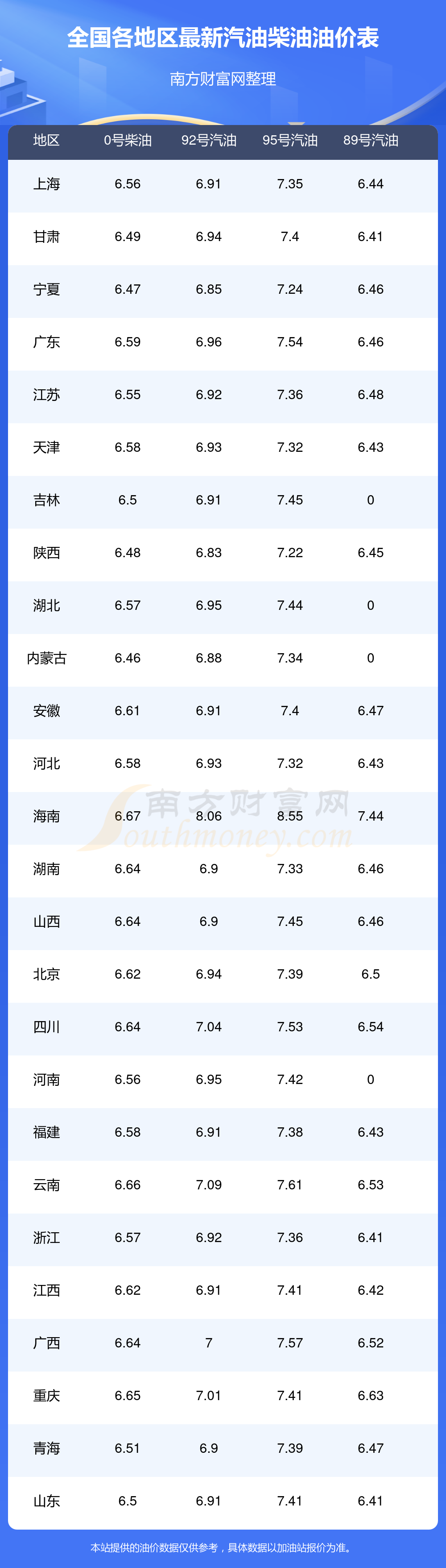 11月16日全國各地區(qū)汽油最新價格(今日油價)?