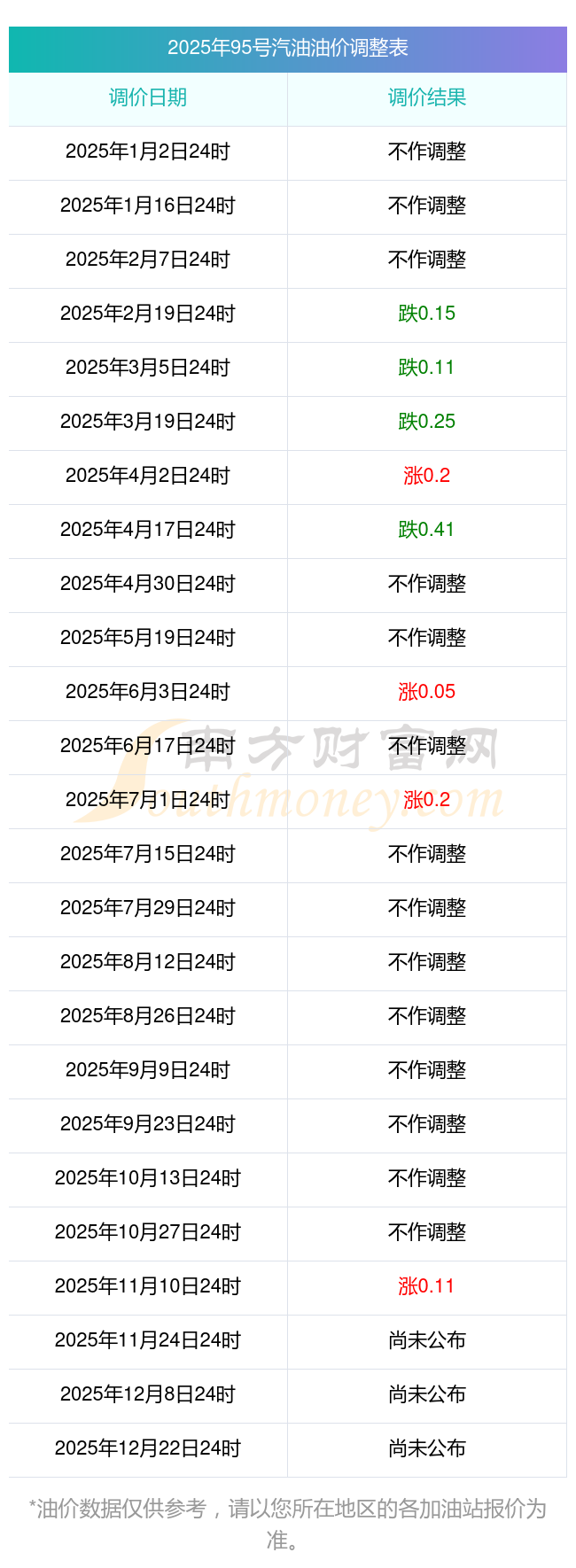 2025年11月16日全國(guó)油價(jià)調(diào)整及價(jià)格一覽表