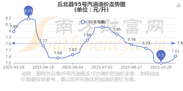 丘北縣95號汽油歷史油價(jià)走勢圖