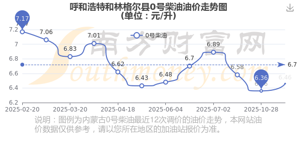 呼和浩特和林格爾縣0號柴油歷史油價(jià)走勢圖
