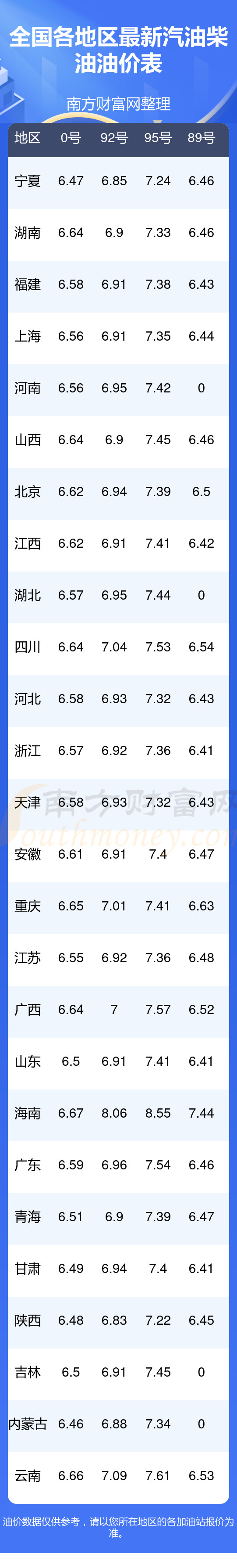 全國(guó)92號(hào)汽油平均價(jià)格為:7元每升,其中,最低為陜西,價(jià)格6.83元/升,最高為海南,價(jià)格8.06元/升。
