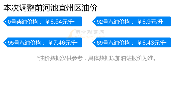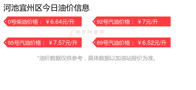 11月16日,河池宜州區(qū)汽油、柴油每升的價格為11月11日調整后的價格,具體為:92號汽油為7元,增了0.1元,增幅達1.45%;95號汽油為7.57元,增了0.11元,增幅達1.48%;89號汽油為6.52元,增了0.09元,增幅達1.4%;0號柴油為6.64元,增了0.1元,增幅達1.53%。