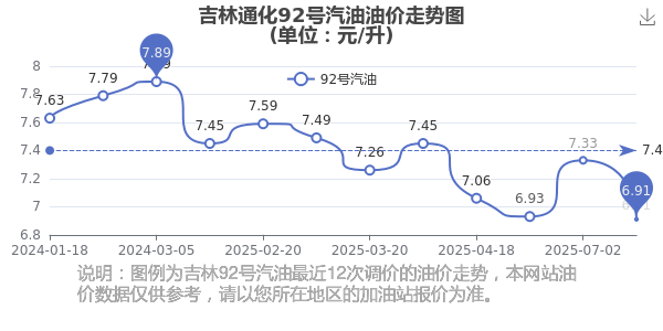 11月16日的吉林通化汽油、柴油每升最新價格(調(diào)整時間為11月11日):92號汽油為6.91元,上漲了0.11元,上漲幅達1.62%;95號汽油為7.45元,上漲了0.11元,上漲幅達1.5%;0號柴油為6.5元,上漲了0.1元,上漲幅達1.56%。下一輪油價調(diào)整時間11月24日24時,距離現(xiàn)在還有8.3天。
