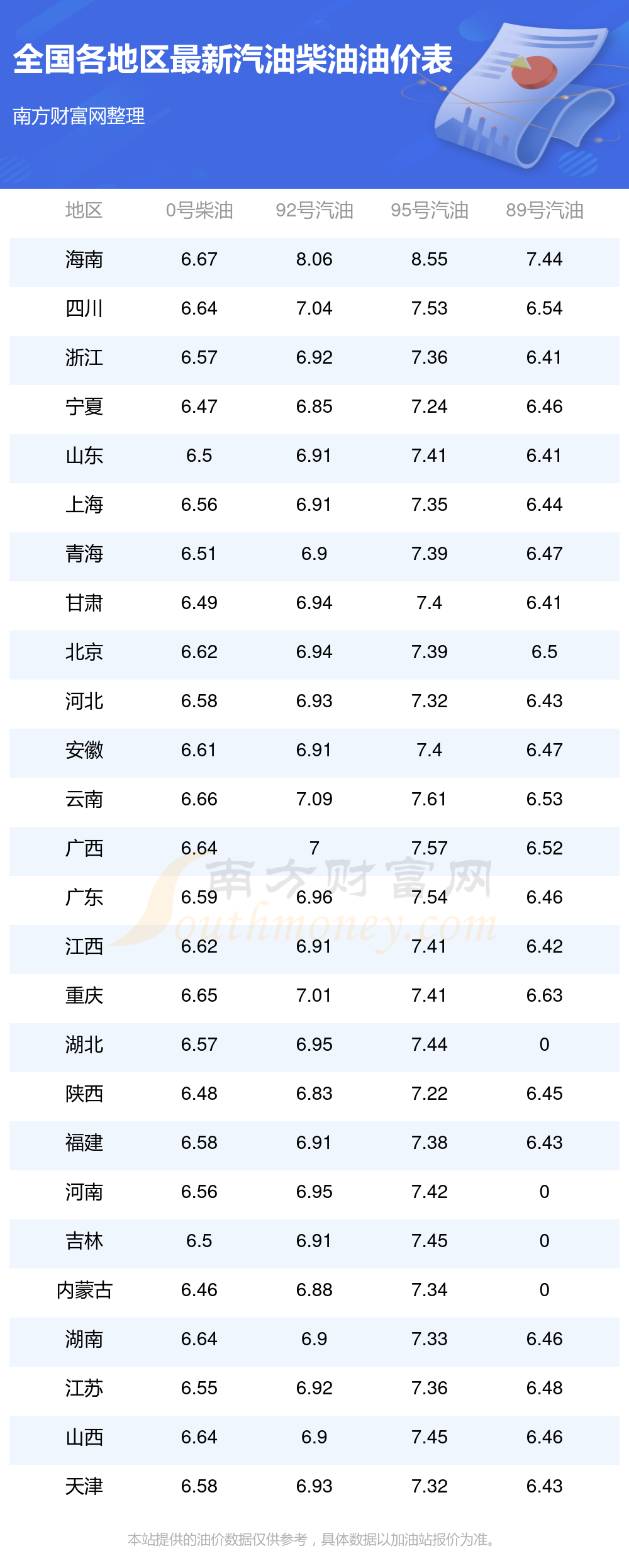 2025年11月16日全國油價調(diào)整及最新汽油價格表