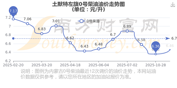 土默特左旗0號(hào)柴油歷史油價(jià)走勢(shì)圖