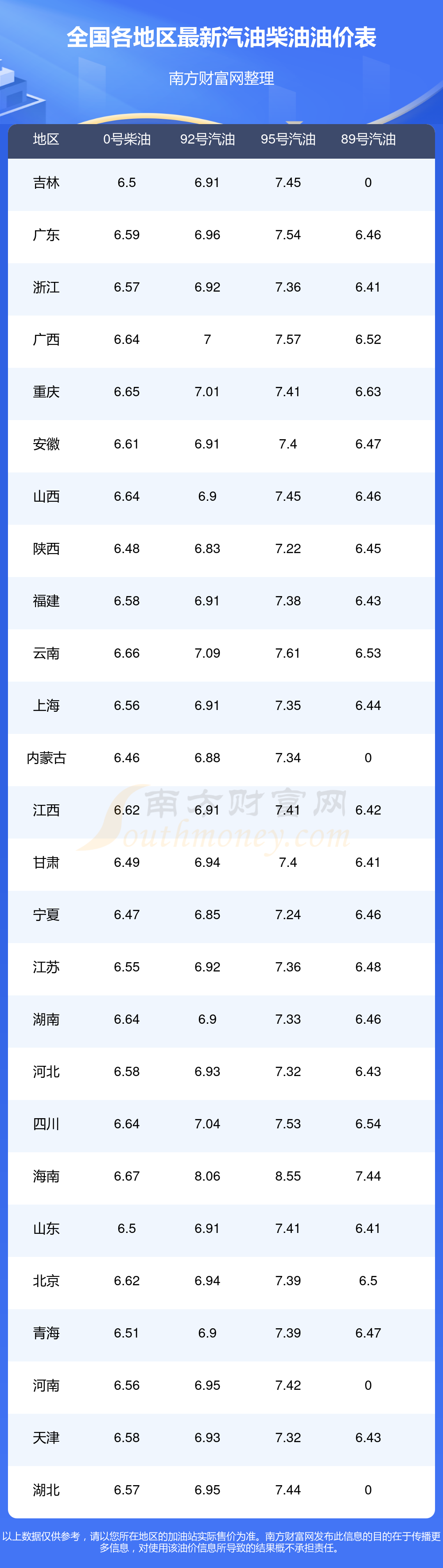 油價數(shù)據(jù)僅供參考,請以您所在地區(qū)的加油站報價為準(zhǔn)。南方財富網(wǎng)發(fā)布此信息的目的在于傳播更多信息,對使用該油價信息所導(dǎo)致的結(jié)果概不承擔(dān)任何責(zé)任。