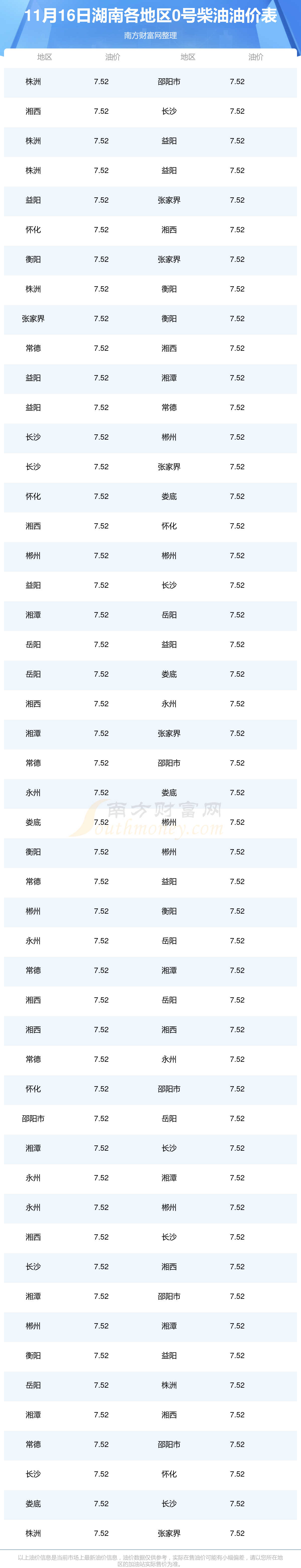 油價數(shù)據(jù)僅供參考,請以您所在地區(qū)的加油站報價為準(zhǔn)。南方財富網(wǎng)發(fā)布此信息的目的在于傳播更多信息,對使用該油價信息所導(dǎo)致的結(jié)果概不承擔(dān)任何責(zé)任。
