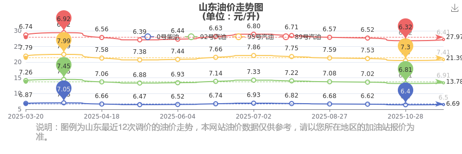 以上油價(jià)信息是當(dāng)前市場(chǎng)上最新油價(jià)信息,油價(jià)數(shù)據(jù)僅供參考,實(shí)際在售油價(jià)可能有小幅偏差,請(qǐng)以您所在地區(qū)的加油站實(shí)際售價(jià)為準(zhǔn)。