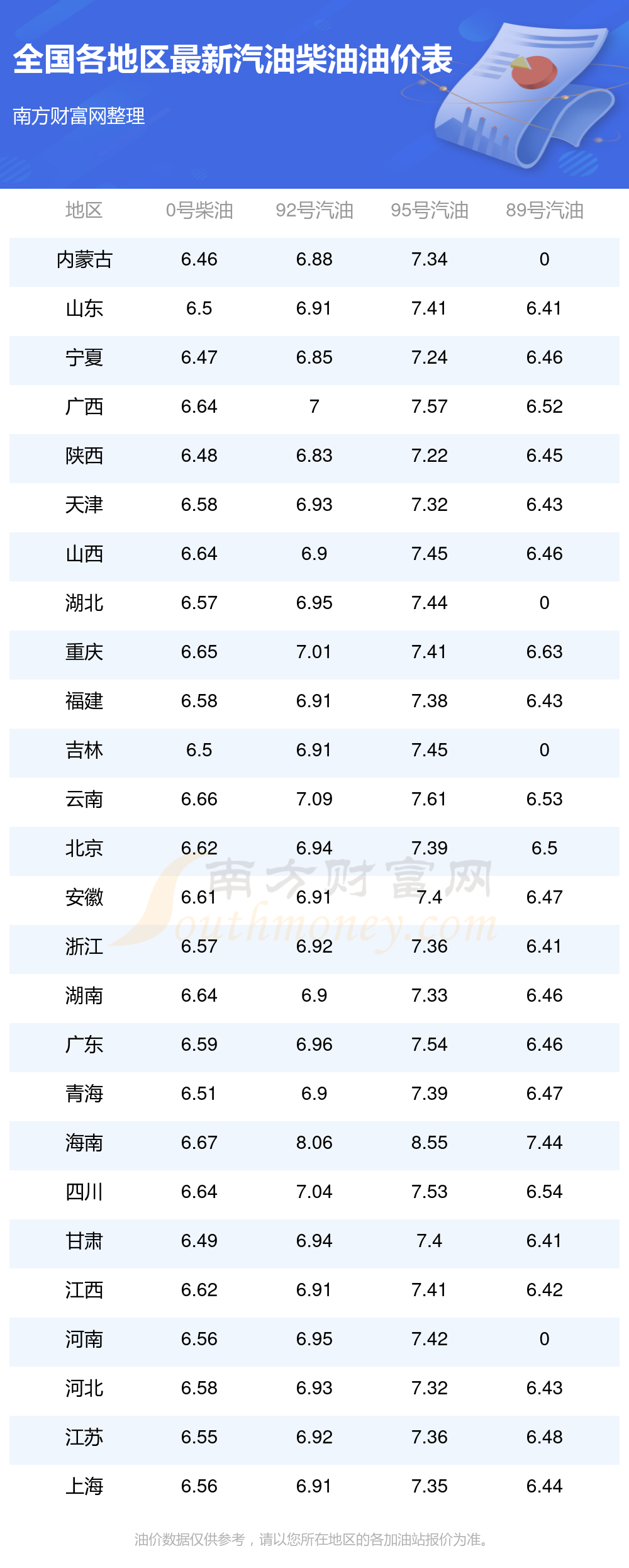 2025年11月16日全國各地油價(jià)調(diào)整及最新汽油價(jià)格表