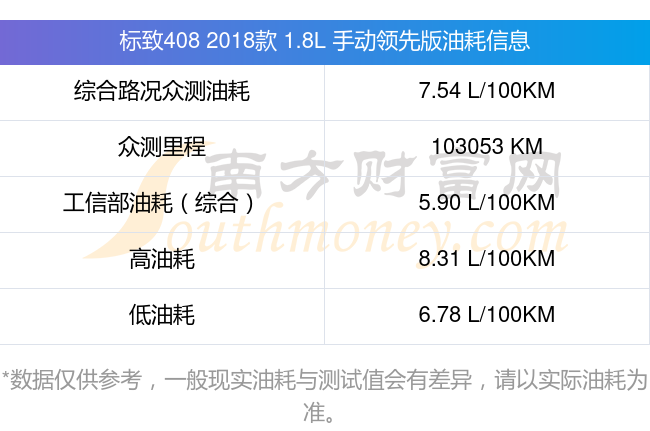 根據(jù)車主實測數(shù)據(jù),該車型低油耗為6.78升每百公里,高油耗為8.31升每百公里,綜合路況眾測油耗為7.54升每百公里,工信部綜合油耗為5.90升每百公里。