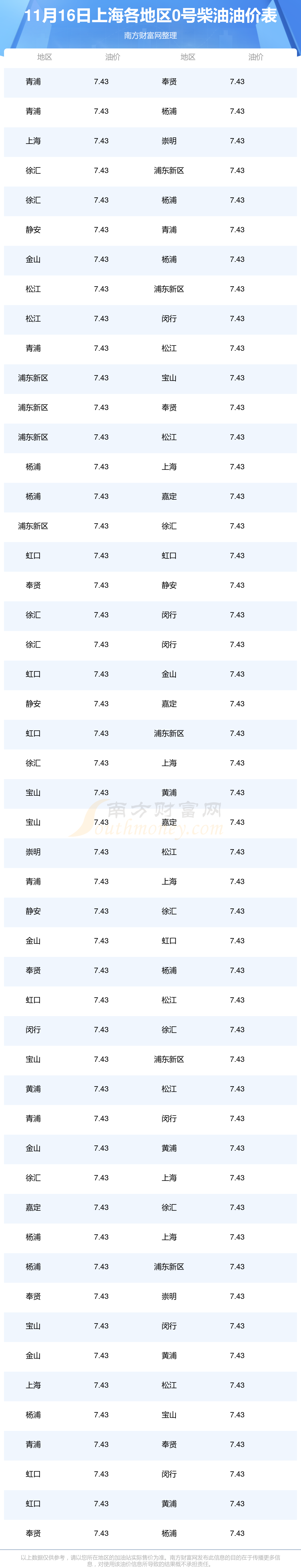 上海各地區(qū)最新0號柴油油價表