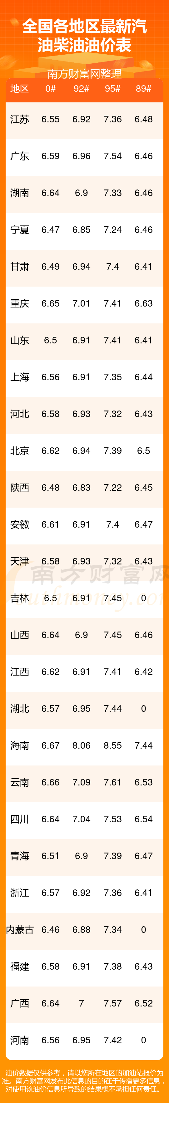 2025年塔洋鎮(zhèn)11月16日汽油價格一覽表