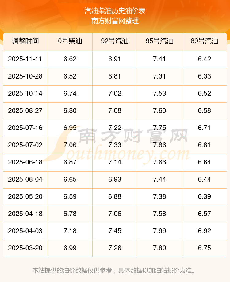 11月油價(jià)調(diào)整時(shí)間:11月10日、11月24日