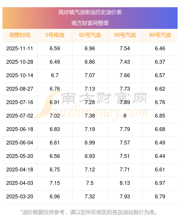 2025年高埗鎮(zhèn)油價(jià)調(diào)整時(shí)間表