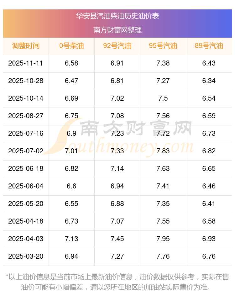 華安縣歷史油價表