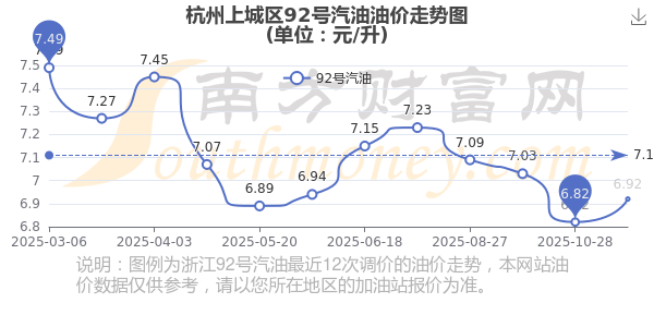杭州上城區(qū)92號汽油歷史油價走勢圖