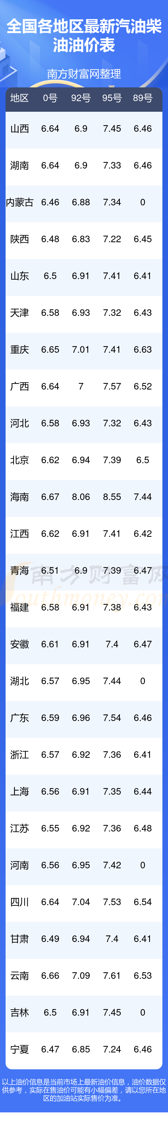 油價數(shù)據(jù)僅供參考,請以您所在地區(qū)的各加油站報價為準。
