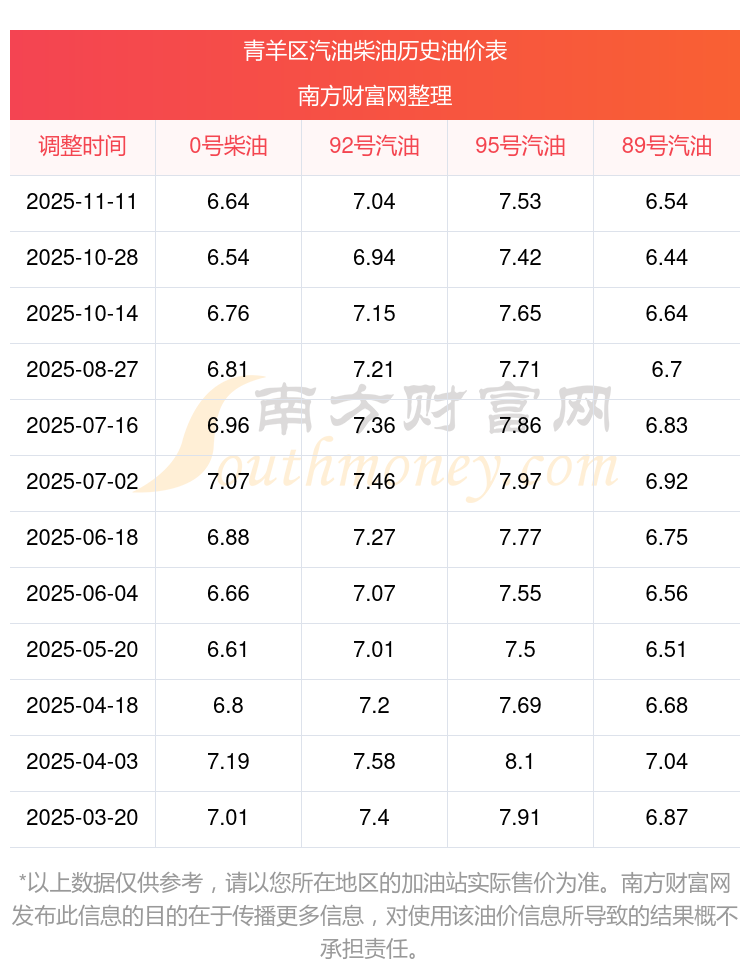 青羊區(qū)汽油、柴油11月16日的價(jià)格是多少錢一升?詳情為:92號(hào)汽油為7.04元,增了0.1元;95號(hào)汽油為7.53元,增了0.11元;89號(hào)汽油為6.54元,增了0.1元;0號(hào)柴油為6.64元,增了0.1元,本次油價(jià)的調(diào)整時(shí)間為11月11日。