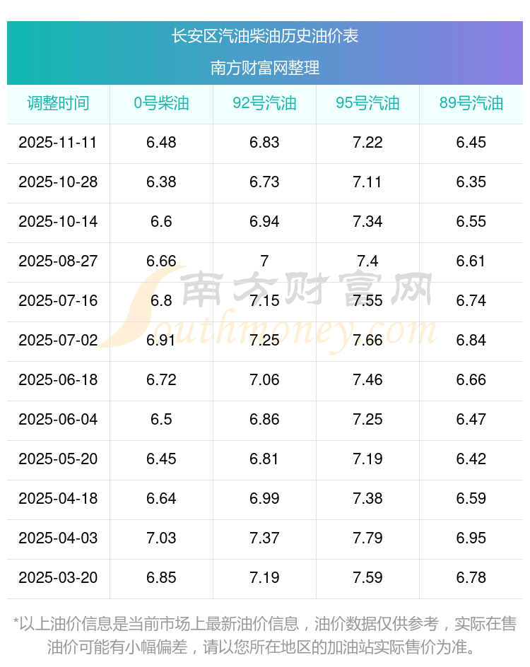 2025年長(zhǎng)安區(qū)油價(jià)調(diào)整時(shí)間表