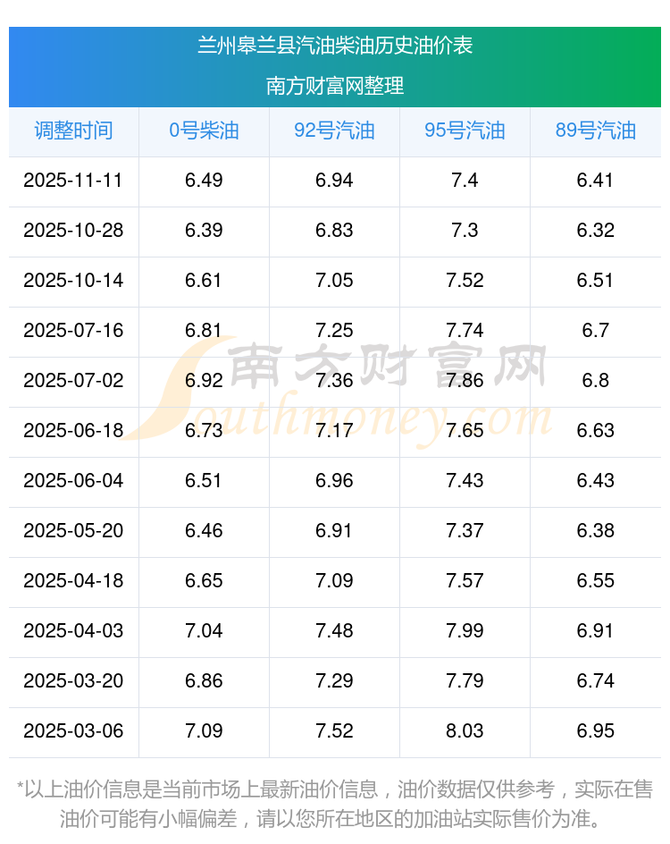 以上油價(jià)信息是當(dāng)前市場(chǎng)上最新油價(jià)信息,油價(jià)數(shù)據(jù)僅供參考,實(shí)際在售油價(jià)可能有小幅偏差,請(qǐng)以您所在地區(qū)的加油站實(shí)際售價(jià)為準(zhǔn)。
