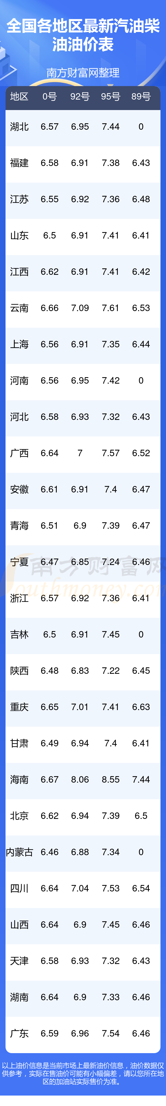 全國89號汽油最新平均價格為:7元每升,其中,最低為浙江,價格為6.41元/升,最高為海南,價格為7.44元/升。