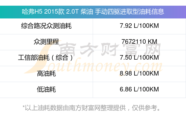 根據(jù)車(chē)主實(shí)測(cè)數(shù)據(jù),該車(chē)型低油耗為6.86升/百公里,高油耗為8.98升/百公里,綜合路況眾測(cè)油耗為7.92升/百公里,工信部綜合油耗為7.50升/百公里。