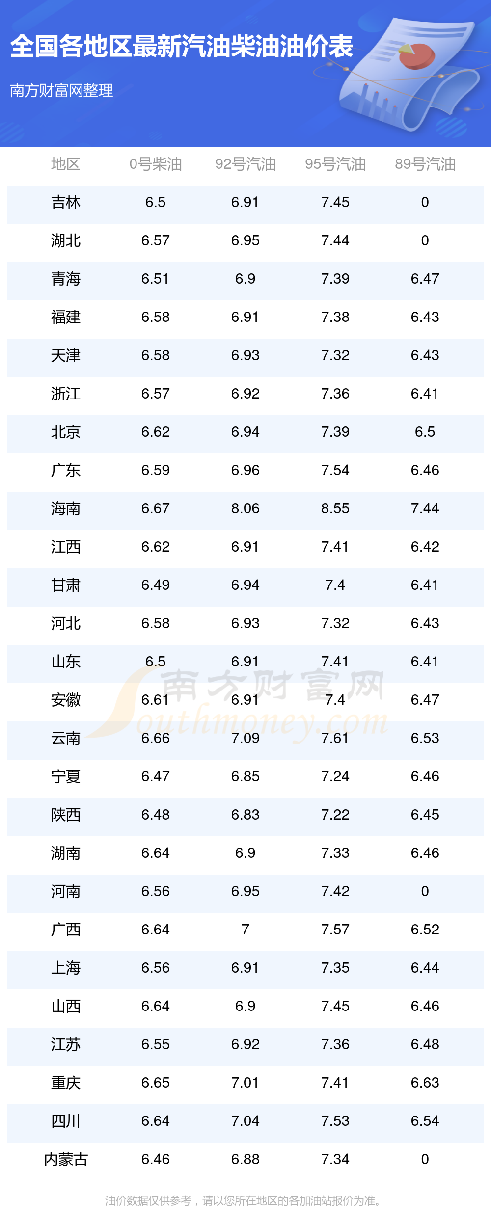 2025年11月16日全國油價調(diào)整及最新汽油價格表