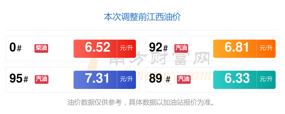 油價數(shù)據(jù)僅供參考,請以您所在地區(qū)的各加油站報價為準(zhǔn)。