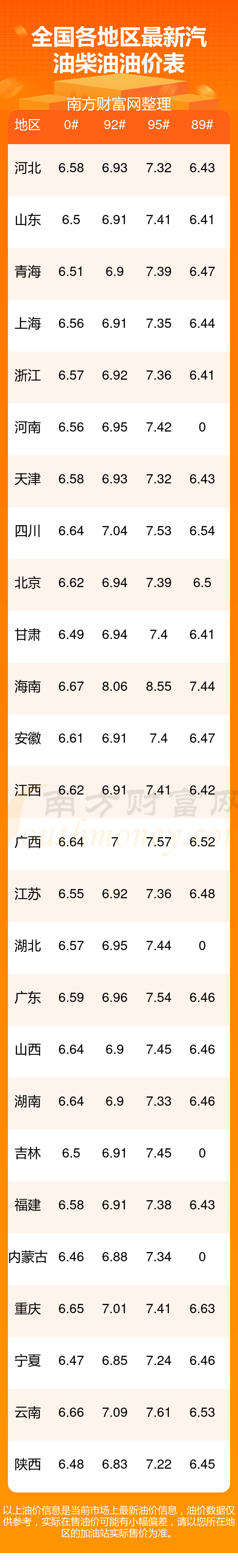 全國各地區(qū)2025年最新汽油價(jià)格表